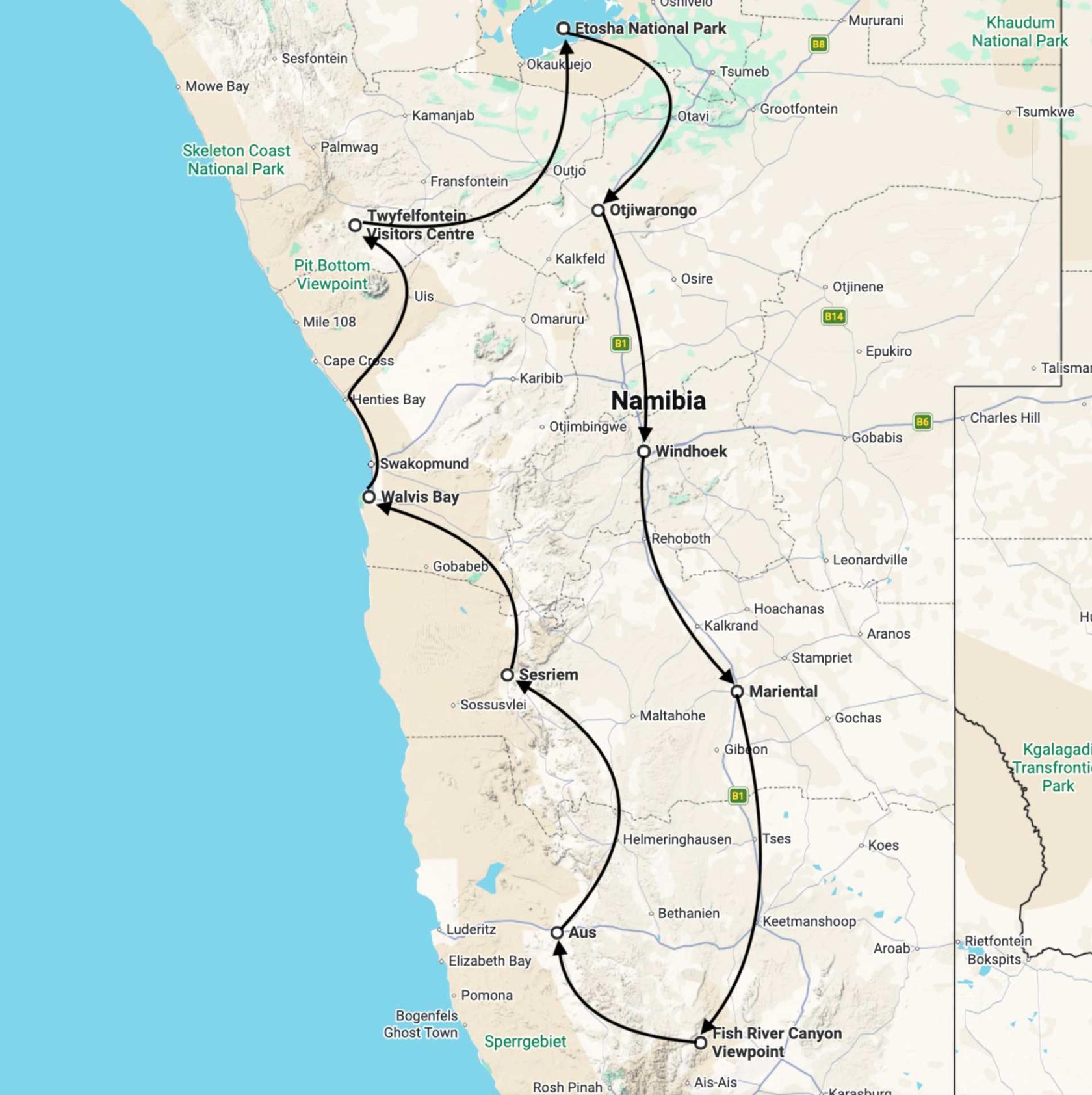 - Traversée complète de la Namibie du sud au nord