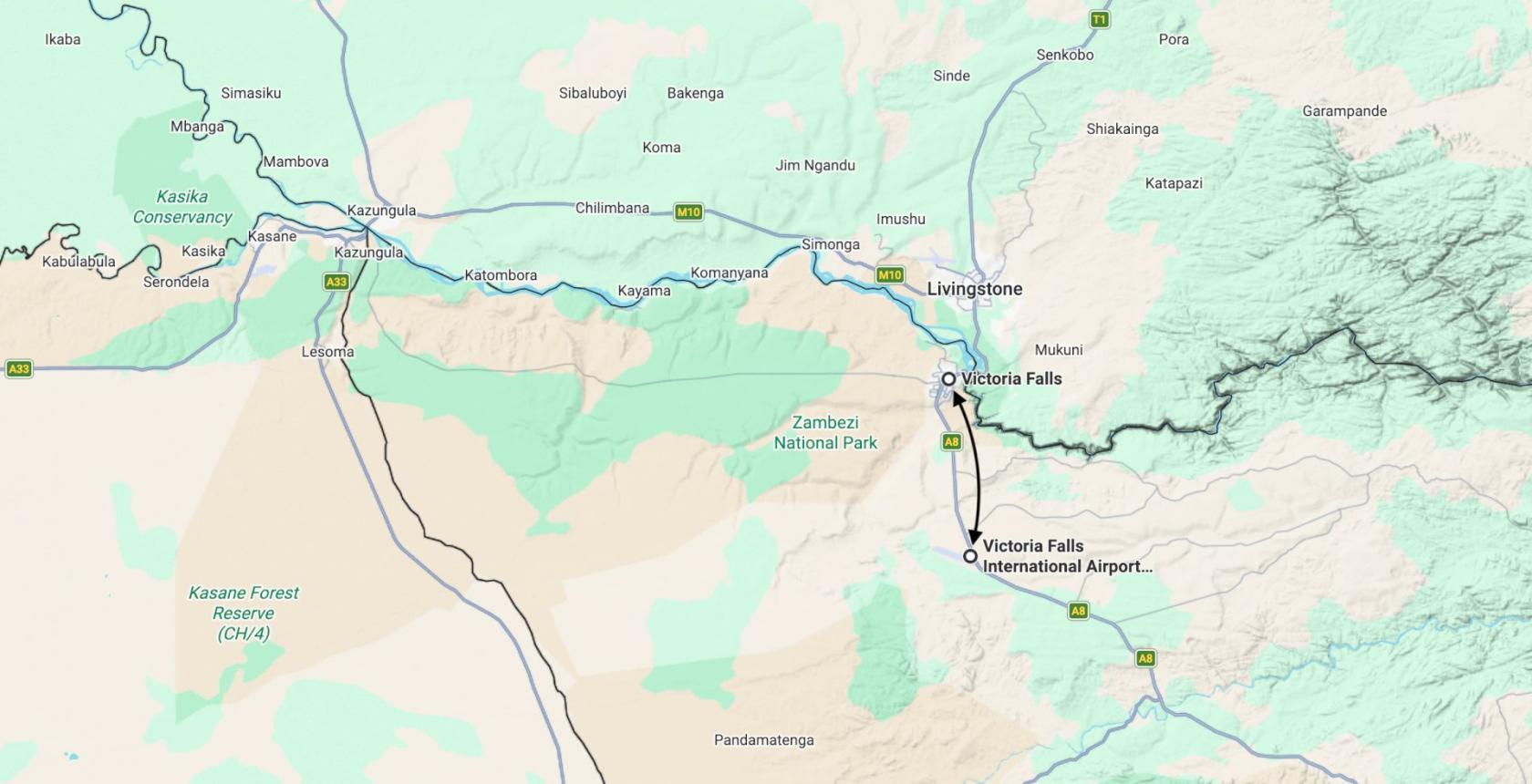 - Transferts aéroport Victoria Falls – hôtel – retour